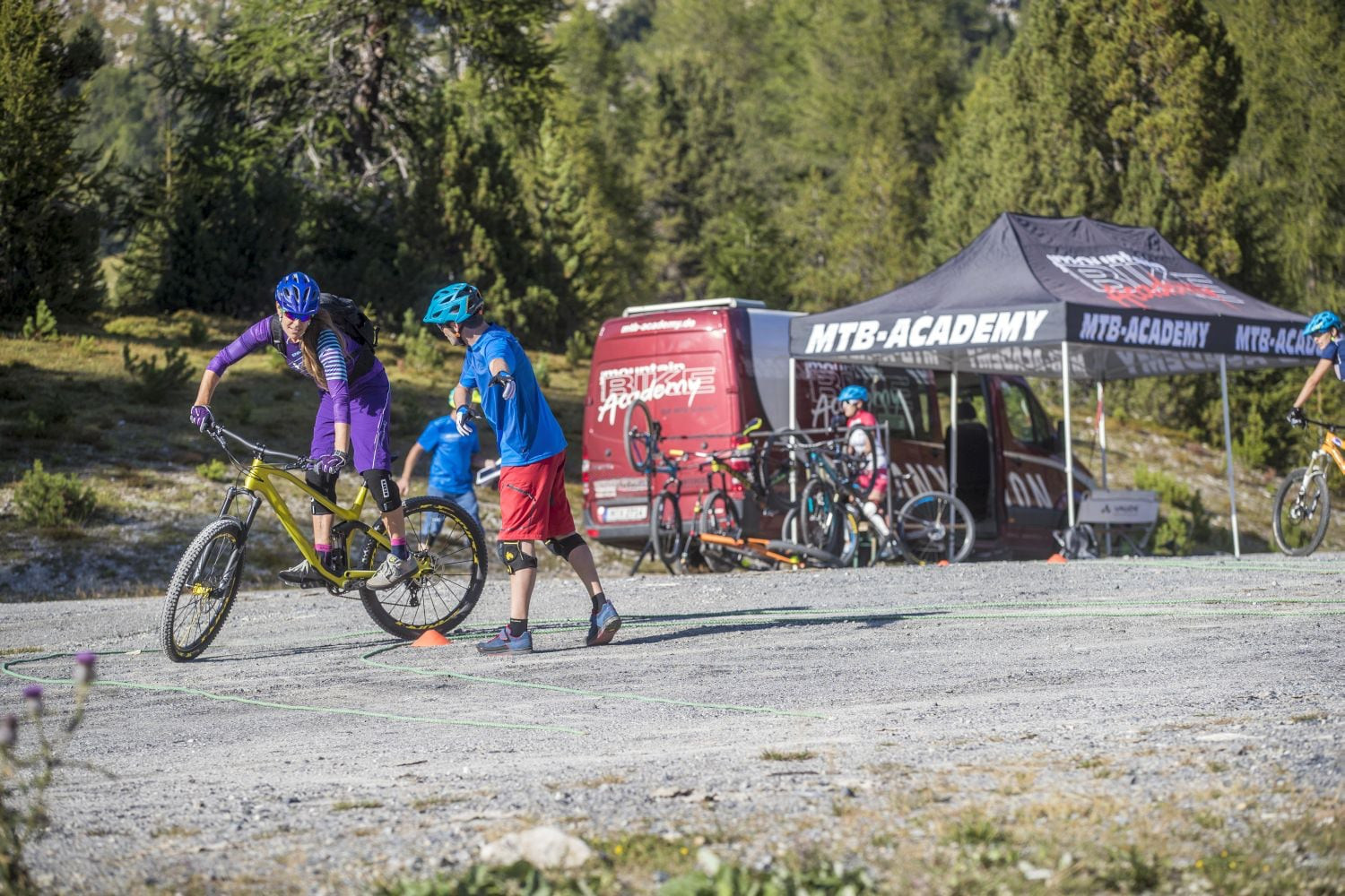 Lerne dich und dein Bike besser kennen. Nachdem du die Grundtechniken des Mountainbikens trainiert hast, gehen wir gemeinsam ins Gelände. Bei unserem Fahrtechniktraining lernst du das Gelände zu lesen und die perfekte Linie durch Anlieger und Wurzelpassagen zu finden. In Kleingruppen von maximal 8 Teilnehmern entdeckst du, wieviel Potenzial in dir und deinem Bike steckt. Wer das Camp hinter sich gebracht hat, ist bereit für fast jede Situation auf dem Rad. Spaß und Fahrfreude sind garantiert.